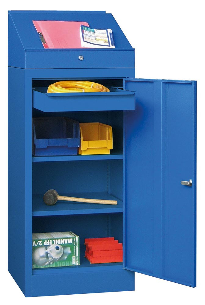 Stehpult stationär, BxTxH 500x500x1000/1270 mm, 2 Böden, 1 Schublade, RAL 5010 E1572246