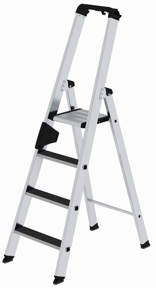 Stufenstehleiter, Aluminium, 4 Stufen, einseitig begehbar, Höhe 1,60 m, Arbeitshöhe 2,95 m, mit rutschhemmender Trittauflage (R13)