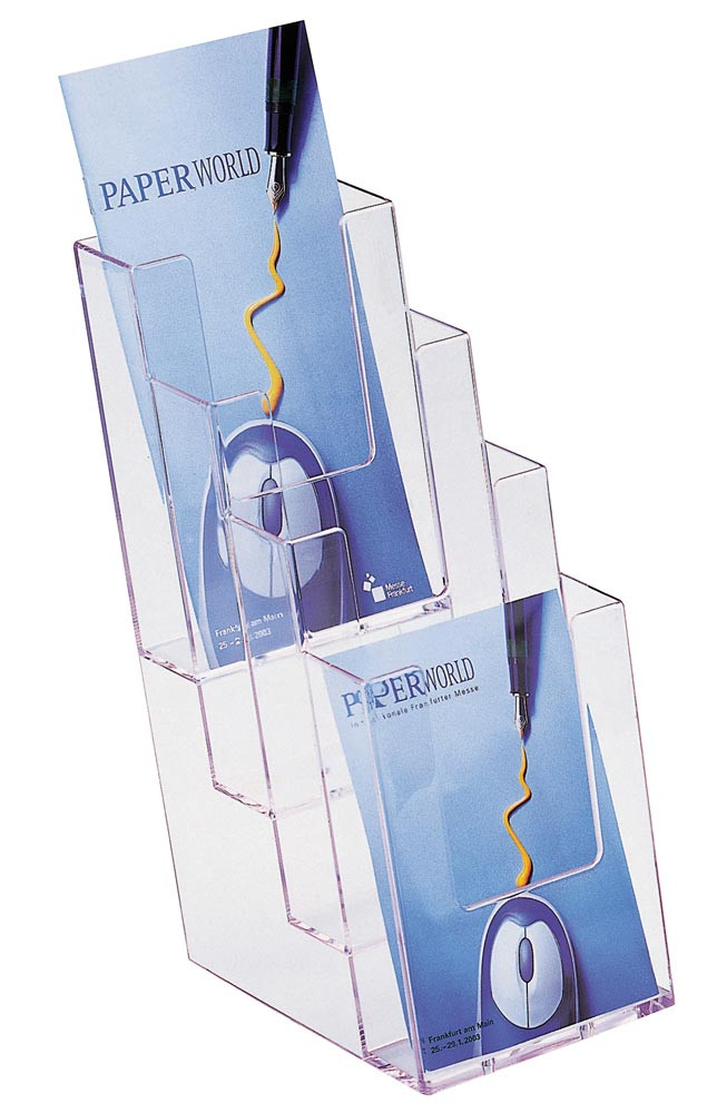 Tischprospekthalter, 4 Fächer DIN A5, BxTxH 165x155x260 mm, glasklar, VE 8 Stück E851145