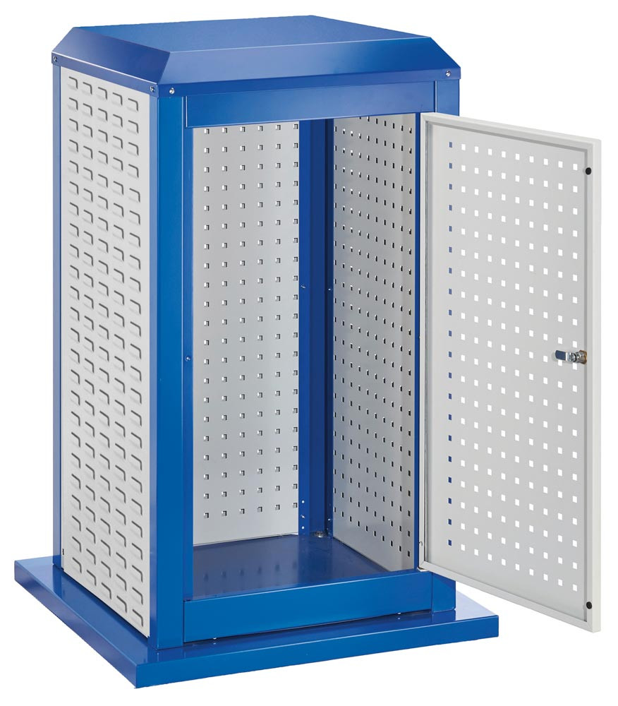 Tool-Tower klein, BxTxH 700x700x1100 mm, stationär, 1 Tür, 3 Platten, RAL 5010/7035 E6423827