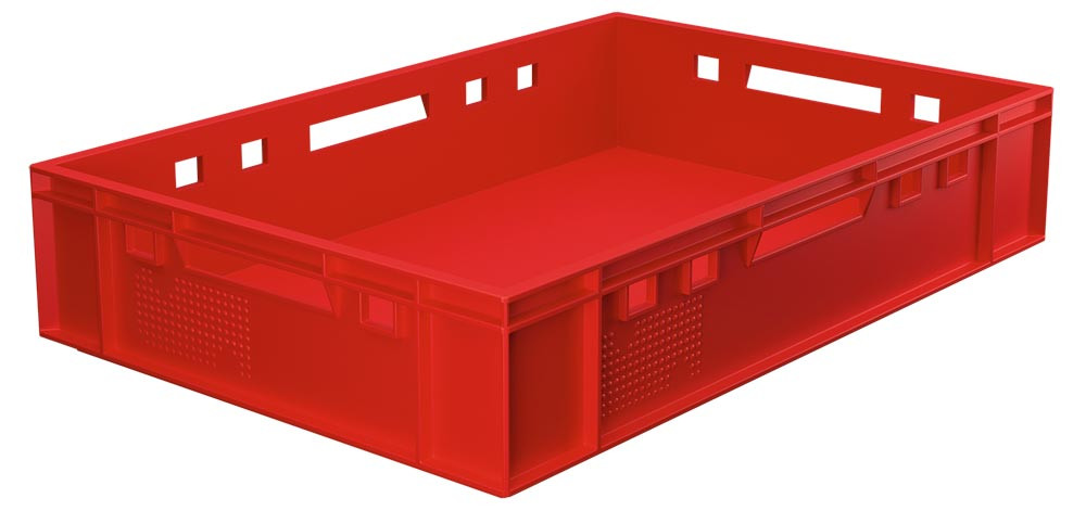 Transportbehälter, PP, lebensmittelecht, 100 % recyclebar, Volumen 25 l, LxBxH 600x400x125, Farbe rot, VE 2 Stück