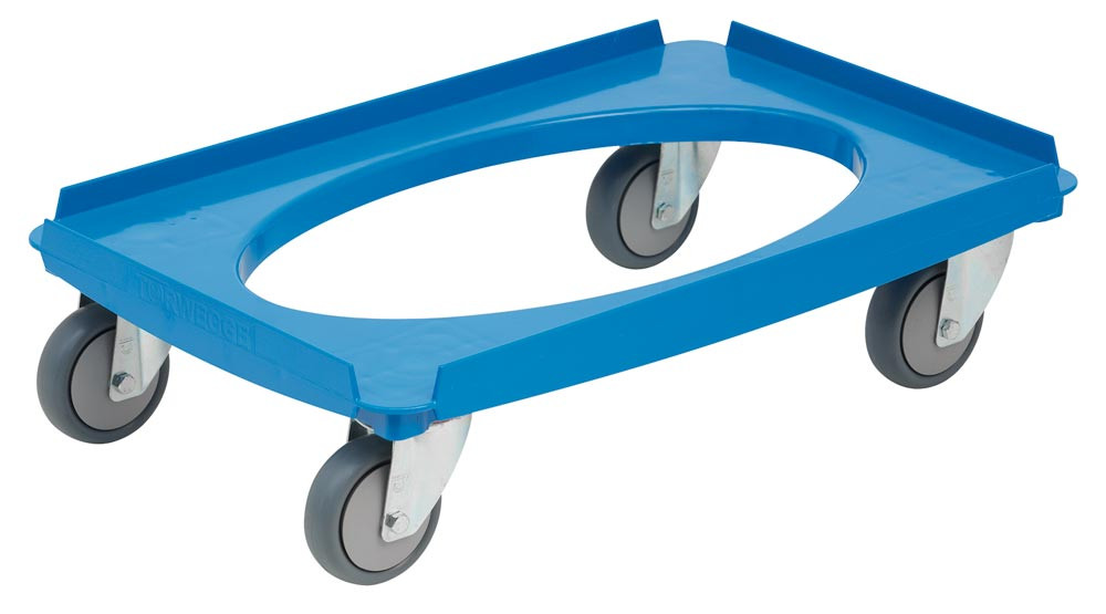 · Passend zu Behälter L x B 600 x 400 mm ∙ ABS-Kunststoff mit verzinkten Stahlgabeln · 4 lebensmittelechte Lenkrollen Ø 100 mm aus Gummi · Traglast 250 kg