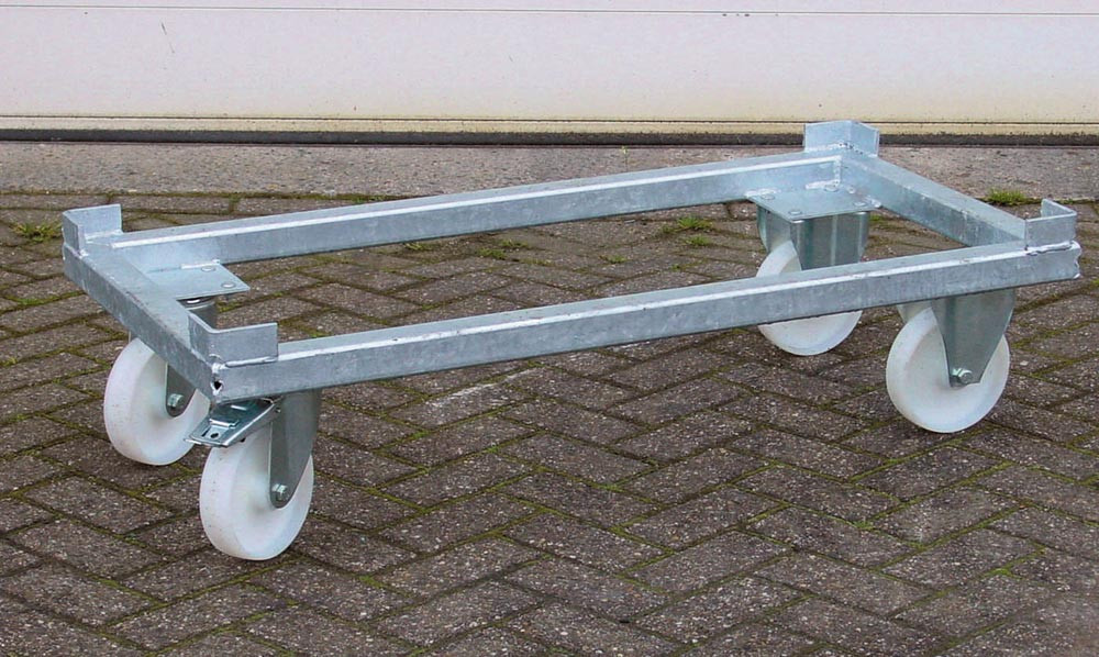 · Verzinkt ∙ Mit 4 Lenk-Rollen aus Polyamid Ø 180 mm