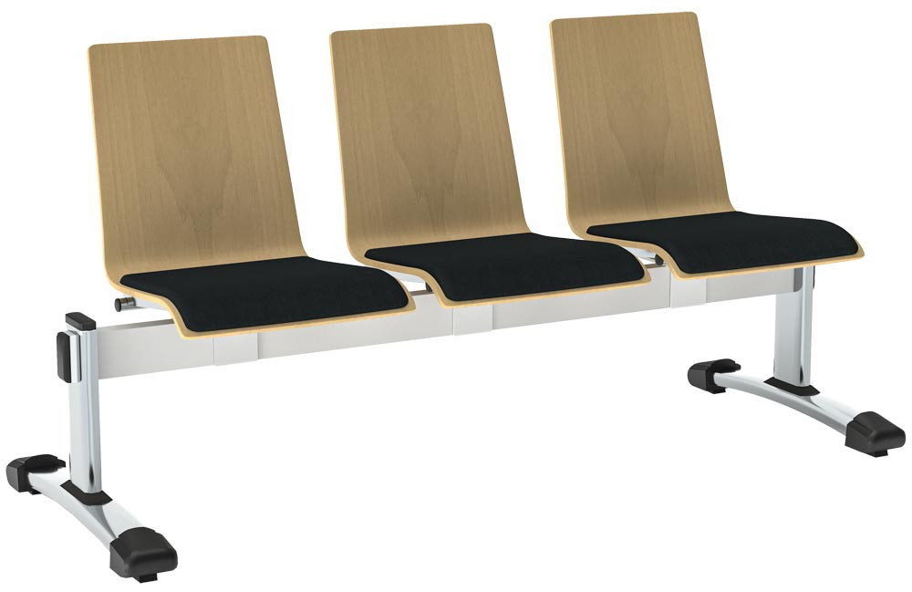 ∙ Mit 2,3 oder 4 Sitzelementen ∙ Integrierter Ablagetisch ∙ Tischplatte in Buchedekor mit ABS-Umleimer ∙ Sitzschalen aus 4-lagigem Buchenschichtholz, Stärke 4,5 mm ∙ Sitzpolster: Stärke 10 mm