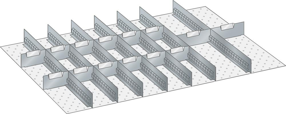 Trennwände, Fronthöhe 50 mm, 7 Schlitzwände 36E, Trennbleche 12x6E + 2x9E, Schubladennutzgröße BxT 918x612 mm
