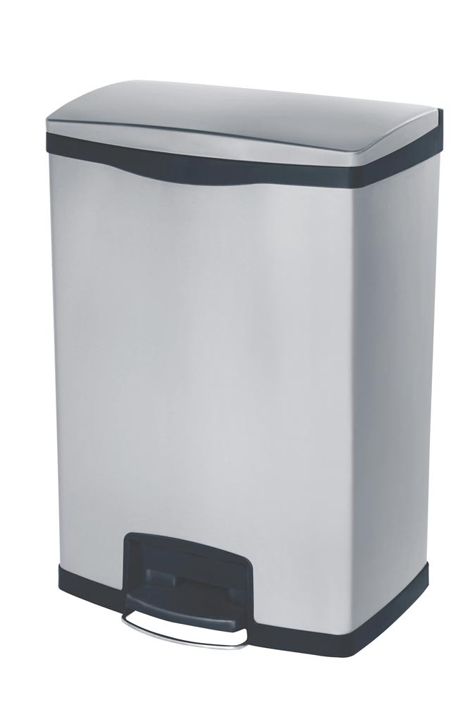 Tret-Abfallsammler, Edelstahl, Volumen 90 l, BxTxH 554x413x810 mm, Pedal an breiter Seite, schwarz