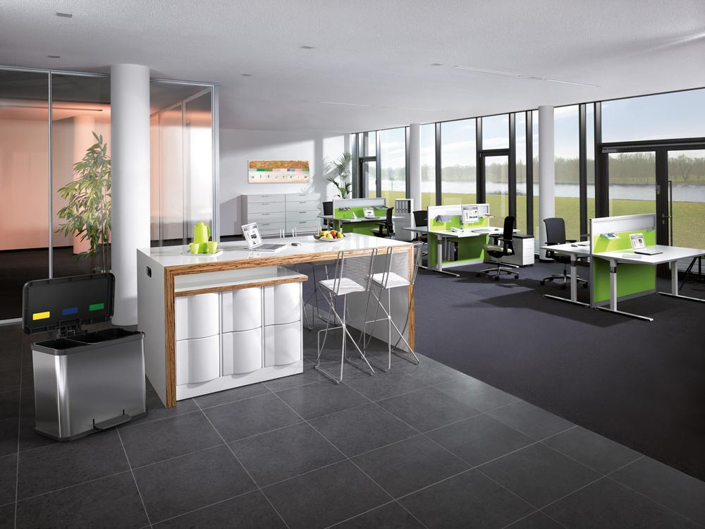 ∙ Rechteck-Gehäuse mit einzelnen Inneneimern zur Mülltrennung ∙ Stabil und standfest ∙ Deckel aus hochwertigem Kunststoff in schwarz mit Vertiefung zur Kennzeichnung der Abfallsortierung, inkl. Farbsticker zur Müllsorten-Kennzeichnung · Gedämpfter Deckel-Schließ-Mechanismus - Deckel schließt leise · Großer Öffnungswinkel zum leichten Befüllen · Ergonomischer Tragegriff im Deckelscharnier integriert · Ergonomisch breites Fußpedal · Innenliegende, hygienische Tretmechanik · Standfest durch breiten Bodenring