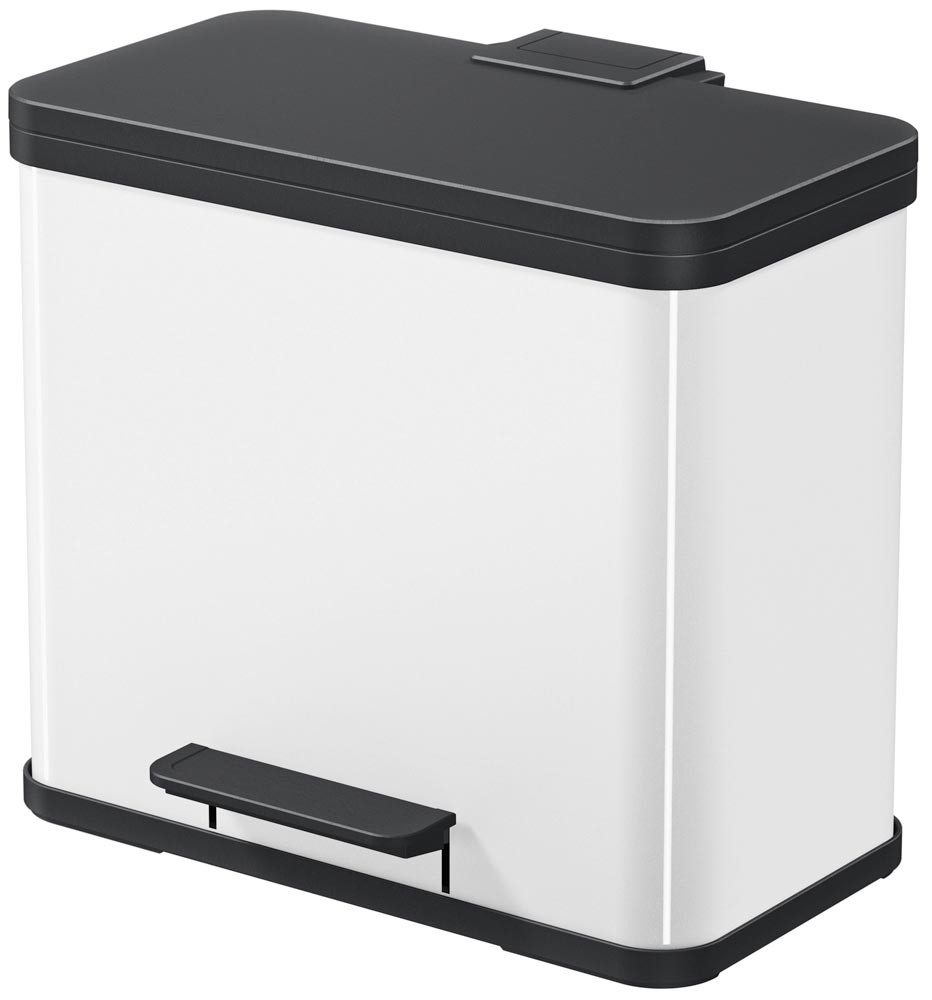 ∙ Rechteck-Gehäuse mit einzelnen Inneneimern zur Mülltrennung ∙ Stabil und standfest ∙ Deckel aus hochwertigem Kunststoff in schwarz mit Vertiefung zur Kennzeichnung der Abfallsortierung, inkl. Farbsticker zur Müllsorten-Kennzeichnung · Gedämpfter Deckel-Schließ-Mechanismus - Deckel schließt leise · Großer Öffnungswinkel zum leichten Befüllen · Ergonomischer Tragegriff im Deckelscharnier integriert · Ergonomisch breites Fußpedal · Innenliegende, hygienische Tretmechanik · Standfest durch breiten Bodenring
