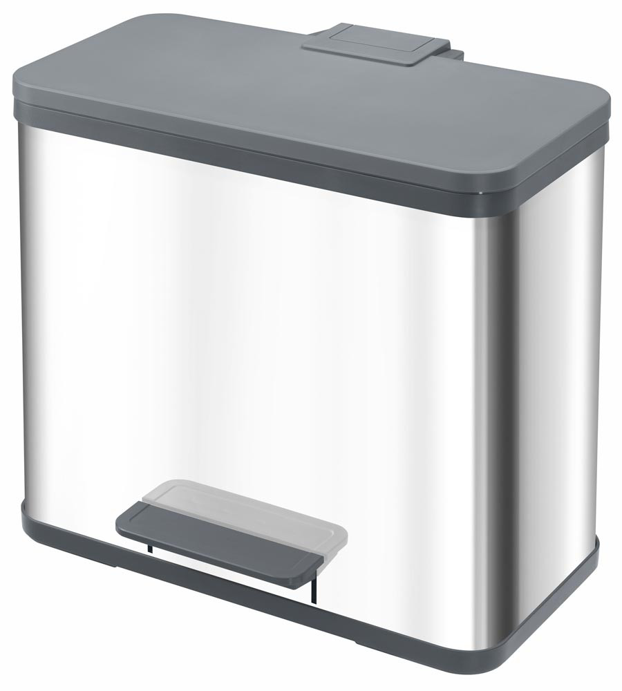 ∙ Rechteck-Gehäuse mit einzelnen Inneneimern zur Mülltrennung ∙ Stabil und standfest ∙ Deckel aus hochwertigem Kunststoff in schwarz mit Vertiefung zur Kennzeichnung der Abfallsortierung, inkl. Farbsticker zur Müllsorten-Kennzeichnung · Gedämpfter Deckel-Schließ-Mechanismus - Deckel schließt leise · Großer Öffnungswinkel zum leichten Befüllen · Ergonomischer Tragegriff im Deckelscharnier integriert · Ergonomisch breites Fußpedal · Innenliegende, hygienische Tretmechanik · Standfest durch breiten Bodenring