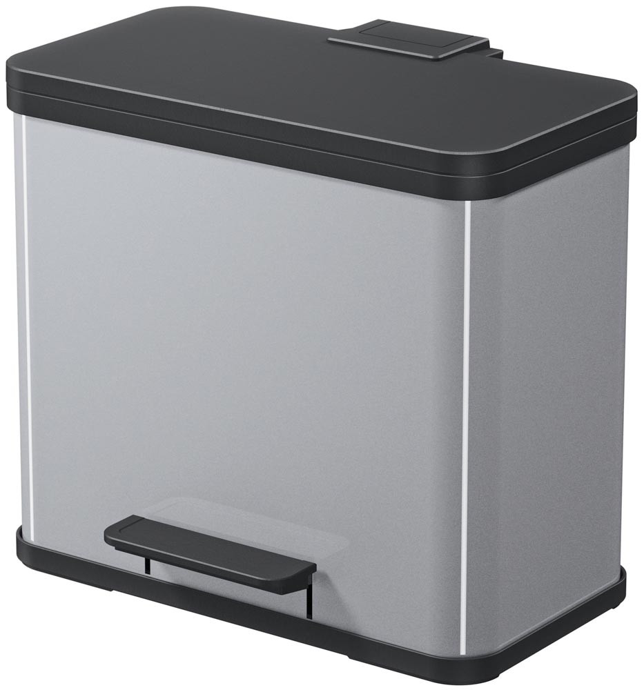 Tret-Abfallsammler, Volumen 2x9 l, BxTxH 320x330x430 mm, Gehäuse Stahlblech silber, Kunststoff-Deckel schwarz mit Soft-Close E6042087