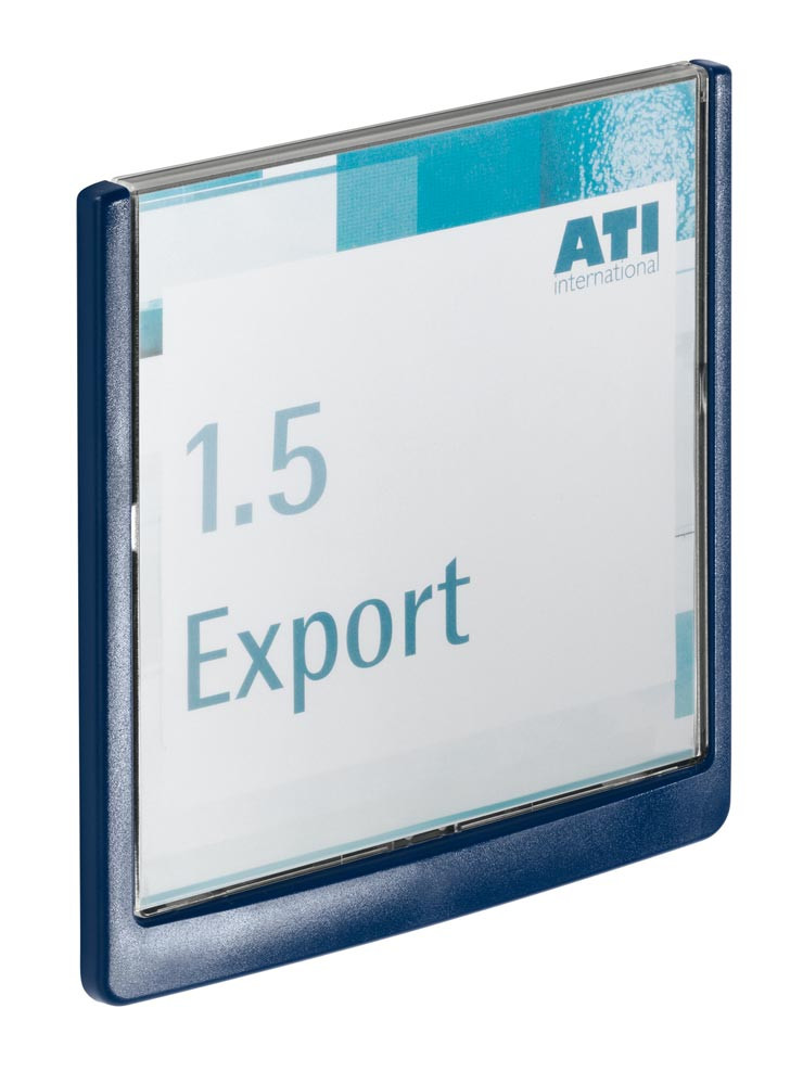 Türschild aus ABS, Sichtfenster Acryl, Klick-Funktion, BxH 149x148,5 mm, Rahmenfarbe blau, VE 1 Stück, Mindestabnahme 5 Stück