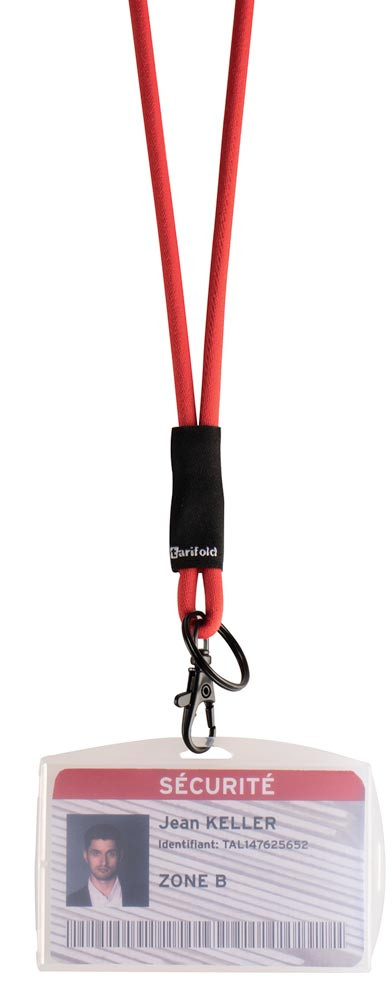 · Rundes Polyesterband mit Softhaptik · Bandlänge 460 mm · Mit Nichterstickungsverschluss · Mit Schlüsselring Ø 25 mm und Karabinerhaken · VE 30 Stück