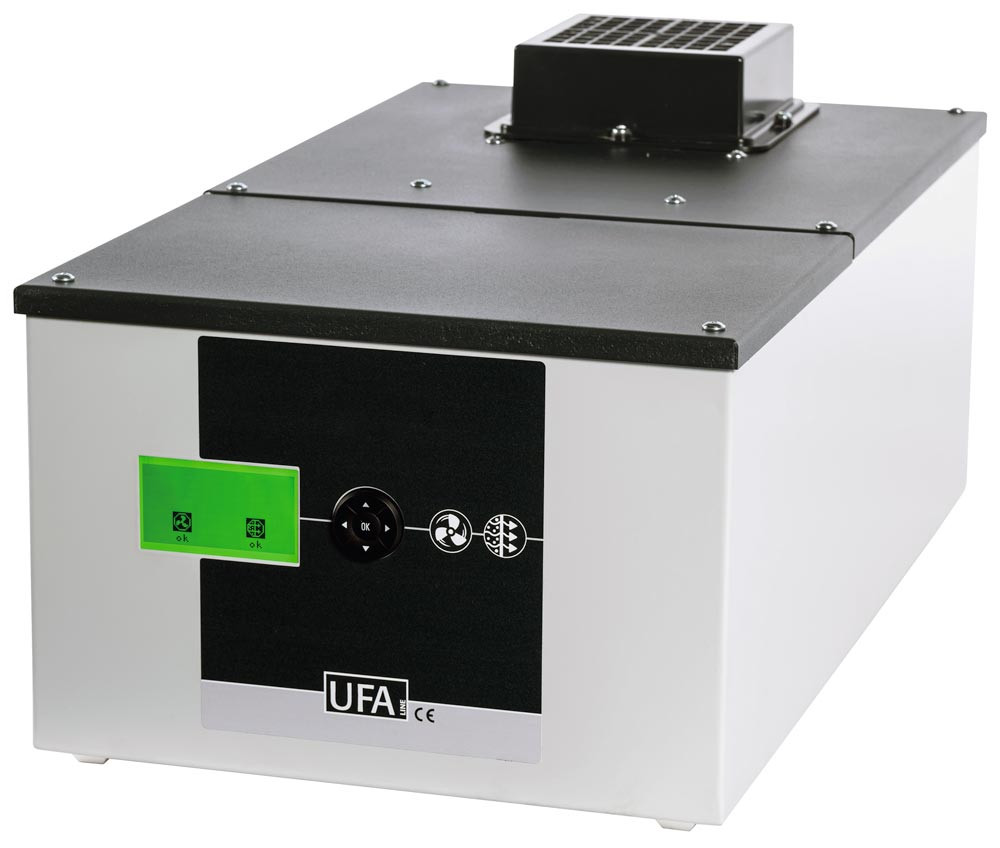 ∙ Gehäuse aus pulverbeschichtetem Stahlblech ∙ Komplett mit mehrstufigem Filtersystem, Anschlusskabel und Netzstecker ∙ Inkl. Überwachungselektronik · Inkl. Displayanzeige und Tastenbedienfeld · Inkl. Sekundärfilter ∙ Abluft- und Filterüberwachung über optischen und akustischen Alarm und potentialfreiem Alarmkontakt ∙ Abmessungen B × T × H 308 × 555 × 256 mm ∙ Der steckerfertige Umluftfilteraufsatz ist in der Lage Lösemitteldämpfe (Kohlenwasserstoffe) permanent bis zur Filtersättigung zu mehr als 99,999 %, sowohl unter normalen Betriebsbedingungen als auch bei einem Unfall im Sicherheitsschrank zurückzuhalten