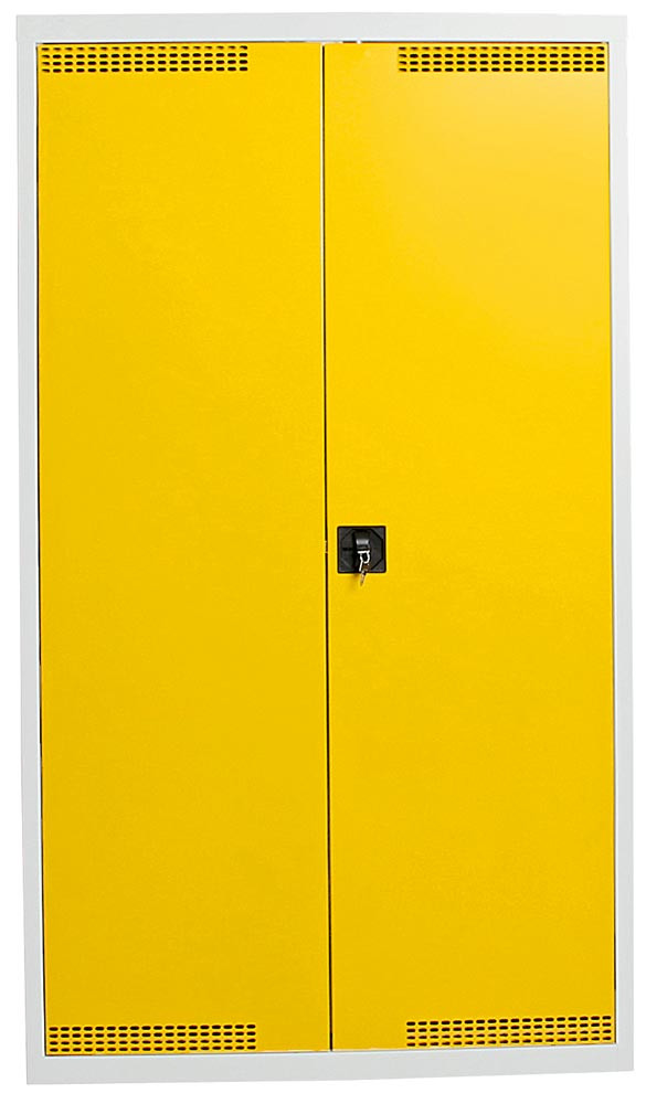∙ #7;Flügeltüren mit Verstärkung, Lüftungsschlitzen, Kartentasche und Drehgriff mit 3-Punkt-Schließung und Zylinderschloss