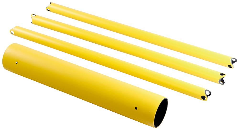 · Satz bestehend aus 3 Holmen mit Durchmesser 63 mm, Länge 1534 mm und 1 Rohr Durchmesser 160 mm, Länge 930 mm · Farbe gelb
