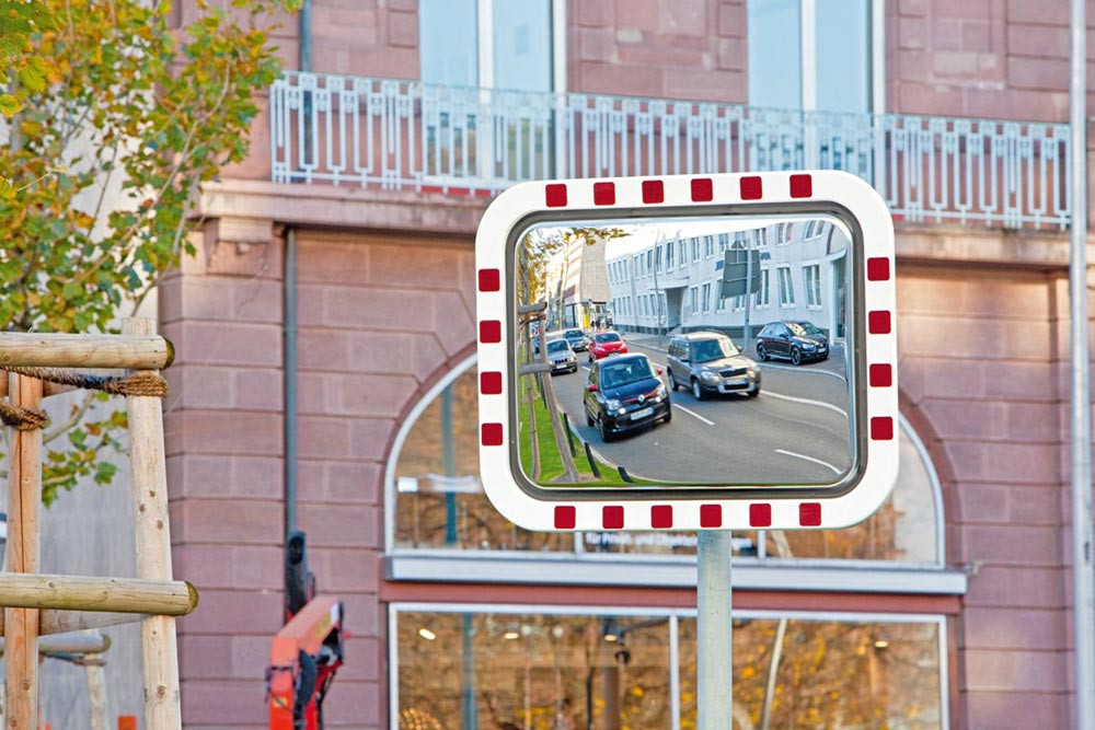 Verkehrsspiegel mit Edelstahl-Spiegelfläche und Edelstahl-Rahmen erhalten Sie gerne auf Anfrage!