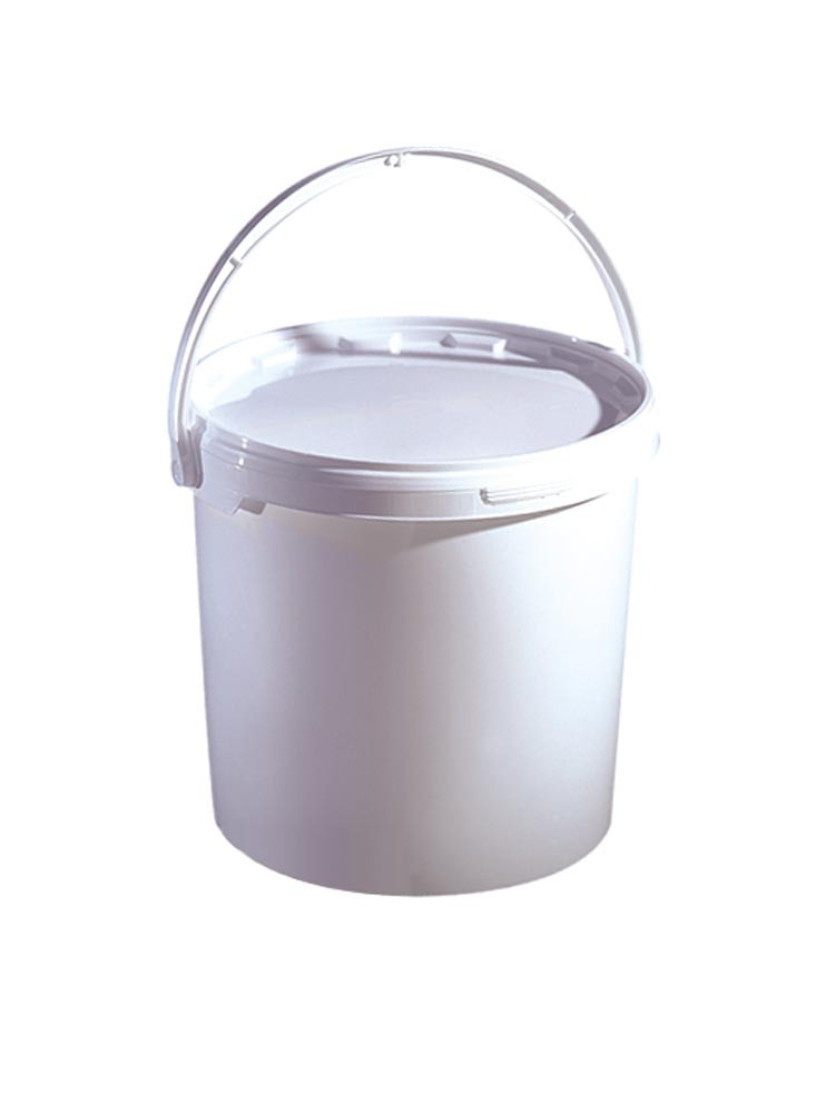 ∙ Aus Polypropylen (PP) ∙ Mit Tragebügel bzw. Griffmuscheln und Deckel mit Originalitätsverschluss · Lebensmittelbeständig · Farbe natur