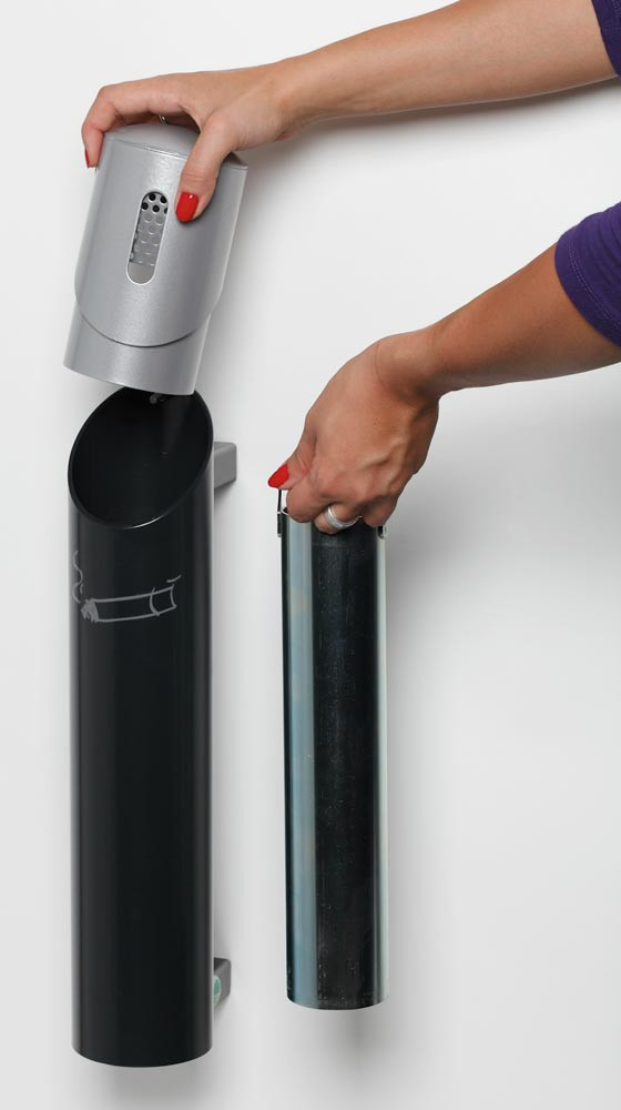 Wandascher, Durchm.xH 170x510 mm, Vol. 1,4 l, Abstreifblech, Stahlblech pulverbesch. Korpus/Kopf anthrazit/silber