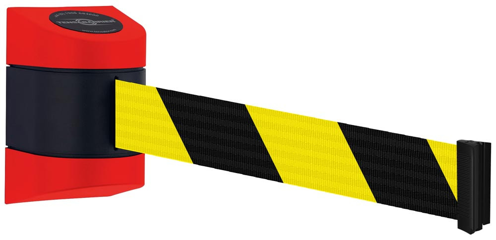 ∙ Nur für den Innenbereich geeignet ∙ Zum permanenten Einsatz in Treppenhäusern, Durchgängen oder in Maschinenhallen ∙ Wandfixierung und Wandhalterung im Lieferumfang enthalten ∙ Gehäuse aus schwarzem Kunststoff mit farbigen Kappen ∙ Gurtlänge 4600 mm