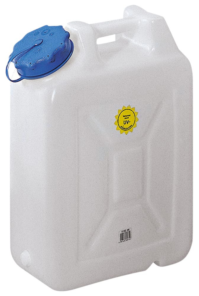 ∙ Aus Polyethylen (HDPE) ∙ Mit Schraubdeckel · Integriertes Breitgewinde 22 mm mit Schraubstopfen verschlossene Öffnung zum Einschrauben von Ablasshähnen und Eckventilen ∙ Sehr robuste Ausführung ∙ UV-stabilisiert ∙ Große Öffnung für leichtes Reinigen · Farbe natur