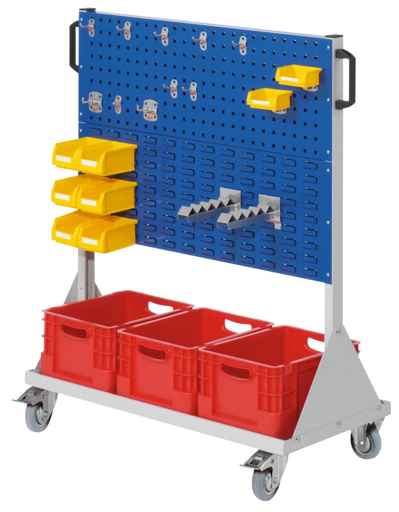 Werkstattwagen, mit 3 Schlitzplatten je Seite, mit Zubehör, BxTxH 1000x500x1230 mm, RAL 7035 E848697