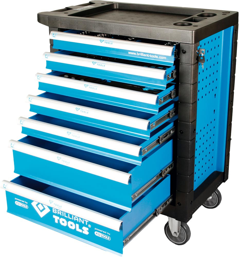 Werkstattwagen, 7 Schubladen und 207 Premium-Werkzeuge, BxTxH 770x470x975 mm, blau E6463875