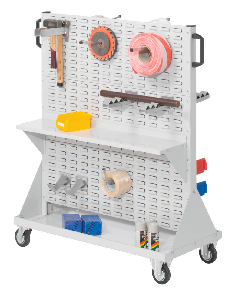 Werkstattwagen mit 2 Lochplatten je Seite, BxTxH 1000x500x1230 mm, RAL 7035/5010 E848019