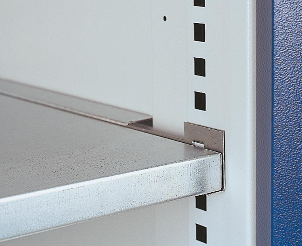 ∙ Korpus aus geschweißtem Stahlblech, wahlweise in 2 Farbvarianten kunststoffbeschichtet ∙ Mit Lochraster und Schlitzprägung in der Rückwand ∙ Aufschlagende, doppelwandige Flügeltüren, Öffnungswinkel > 200°, Tür mit Loch- oder Schlitzplatten oder Sichtfenster ∙ Dreiriegeliges Sicherheits-Zylinderschloss mit versenktem Drehgriff ∙ Verzinkte Fachböden im Raster von 25 mm höhenverstellbar, Traglast 80 kg (bei gleichmäßig verteilter Last) ∙ Teleskopgeführte Schubladen mit Vollauszug, Traglast 110 kg (bei gleichmäßig verteilter Last), im Raster von 25 mm höhenverstellbar