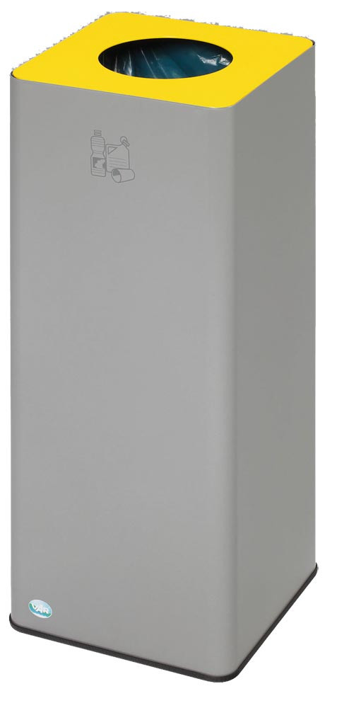 Wertstoffsammler, Stahlblech, Vol. 70 l., Klemmring, BxTxH 320x320x700 mm, Korpus silber, Aufsatz gelb, runder Einwurf