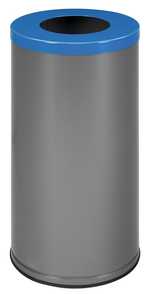 Wertstoffsammler, Stahlblech, Volumen 70 Liter, Durchm. 355 mm, Höhe 700 mm, Behälter eisenglimmer, Deckel enzianblau